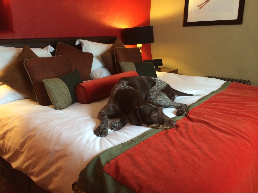 Accommodation – The rooms are lovely , well furnished , modern, large and very clean , NaturalTreats are left for your dog which is a nice touch, Our room was a large double on the first floor, accessed by the sweeping staircase ,The Pointer Dog looked very much the smart traveller waltzing up such a grand staircase .. Check in staff were very attentive to our dogs.