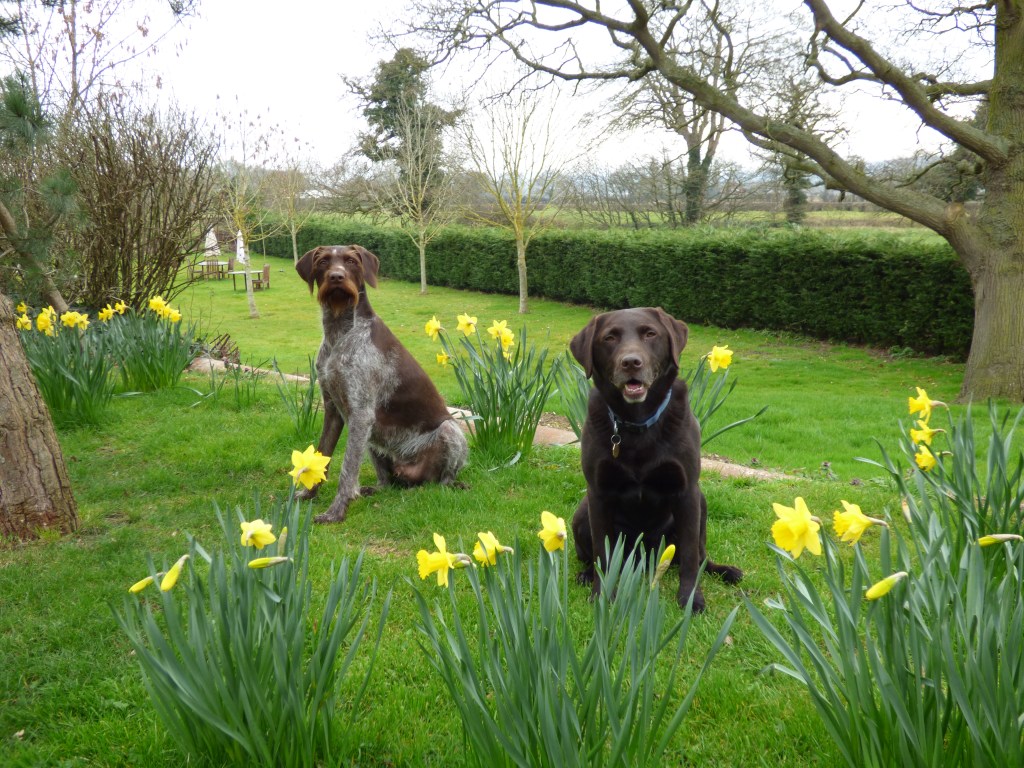 The grounds are stunning , with oriental and manicured gardens , circular walks with beautiful views. The Pointer Dog and Foxy Roxy did have a little gallop around the Croquet lawn at dusk , rabbits all around ! Also just off the drive is lots of walking through rolling fields on public footpaths , however be aware there are sheep in most of the fields and dogs need to be kept on their leads. In some instances there may not be access at lambing time .. something to consider.